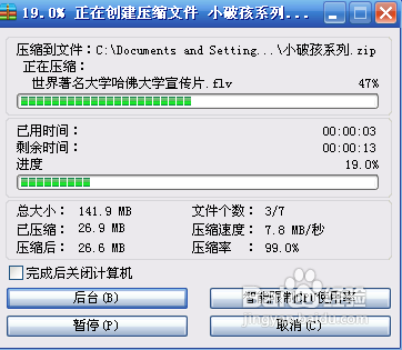 等待壓縮加密進(jìn)度條達(dá)到100%就好壓縮完畢了