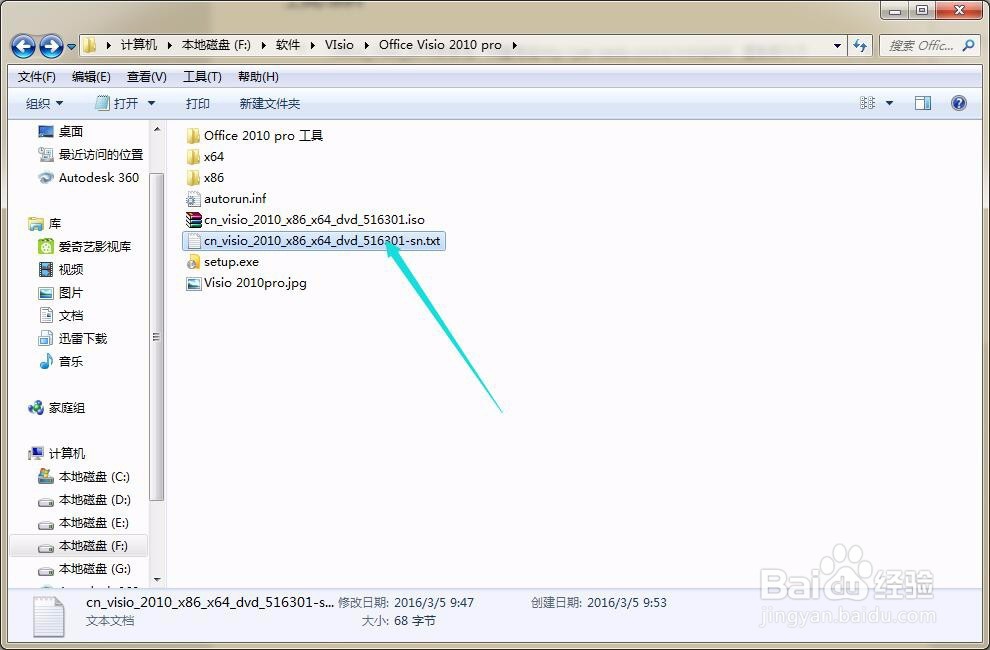 待安裝準備工作完成后,選擇試用對話框,會提示輸入產(chǎn)品密鑰。此時,在解壓后的文件夾里打開cn_visio_2010_x86_x64_dvd_516301-sn文件,里面有產(chǎn)品密鑰,將此產(chǎn)品密鑰輸入進去即可安裝。