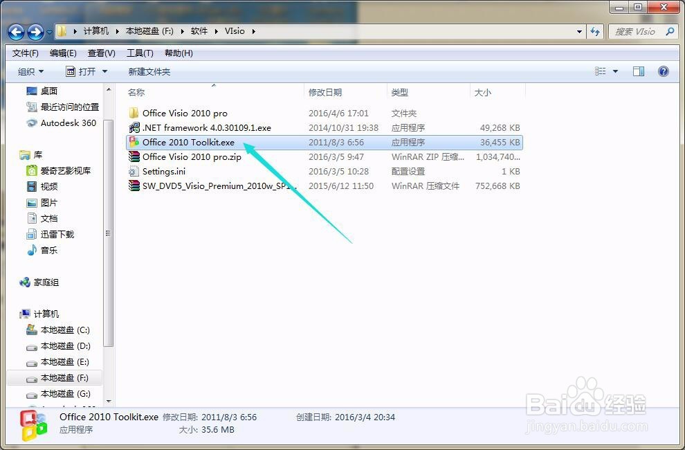 然后關(guān)閉打開的文件,將下載的安裝文件破解解壓,并點擊Office 2010 Toolkit文件,如圖所示。