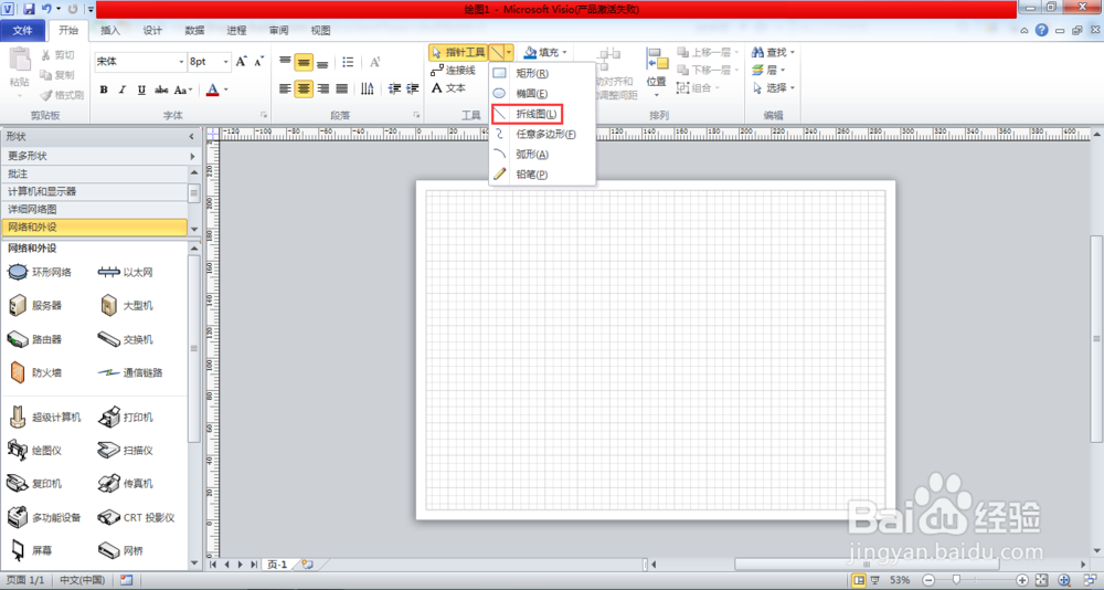 點擊折線圖,在visio 2010文檔上用鼠標畫一條直線。