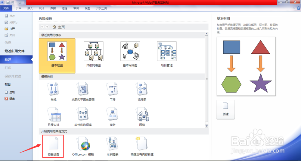 visio 2010 簡體中文版使用教程打開Visio2010后的首界面 如圖所示 可以點擊新建 選擇基礎(chǔ)模板或者空白模板
