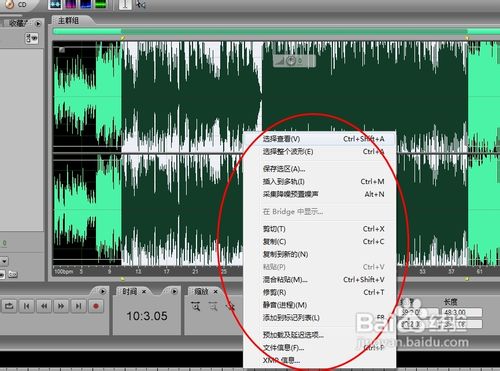 導入文件后右擊文件,點擊編輯文件,在右側(cè)的編輯窗口中就可以看見文件的波形圖。在波形文件的上面有一個黃顏色的滑塊是用來選擇時間的,選擇你要編輯的位置進行編輯即可。右擊鼠標可以對文件進行簡單的編輯。
