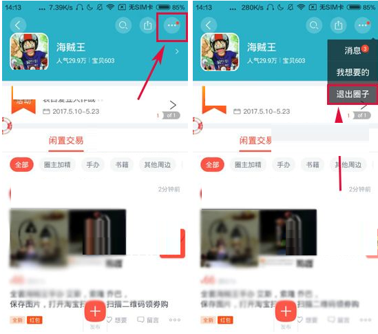 2)點擊右上角【...】,然后點擊【退出圈子】;(如下圖)