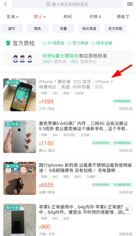 這時候可以看見上方有質檢標準等字樣,說明轉轉平臺還是很正規(guī)的,所以大家可以放心選購。