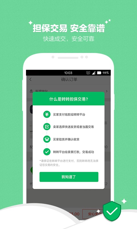 在轉轉,每一件物品都支持擔保交易,你可以先驗貨后付款;