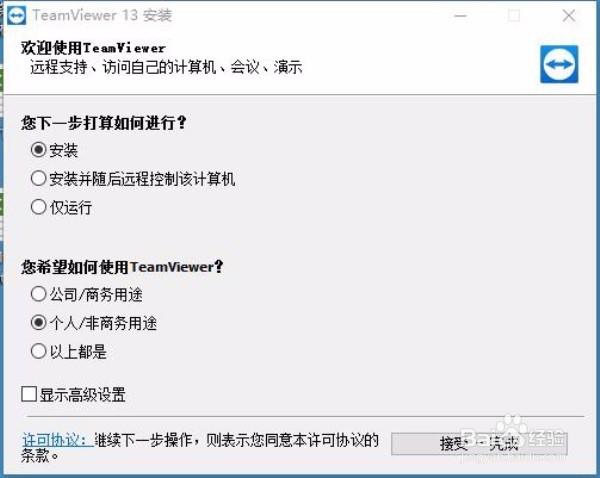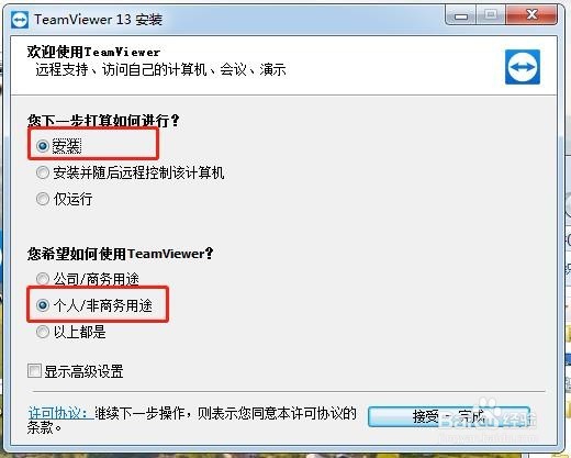 按步驟完成TeamViewer的安裝后,即可解決TeamViewer軟件提示試用期已到期無法進(jìn)行遠(yuǎn)程操作的問題。