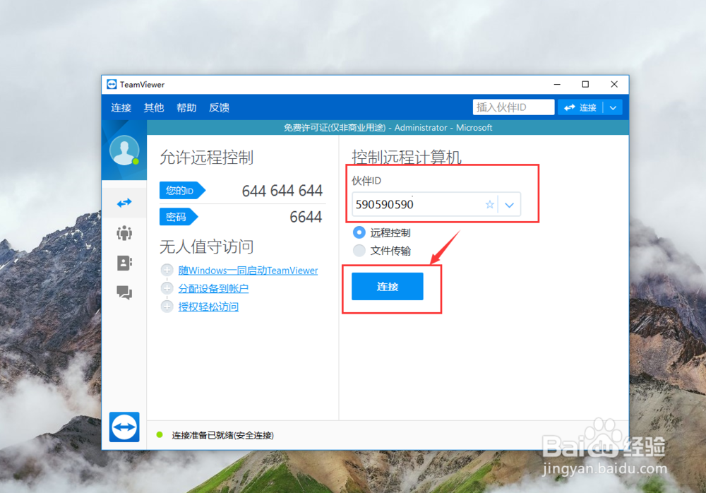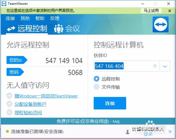 進(jìn)入登錄界面以后會顯示用戶id和密碼,作為主控方,你需要遠(yuǎn)程另一臺計(jì)算機(jī)的id和密碼。