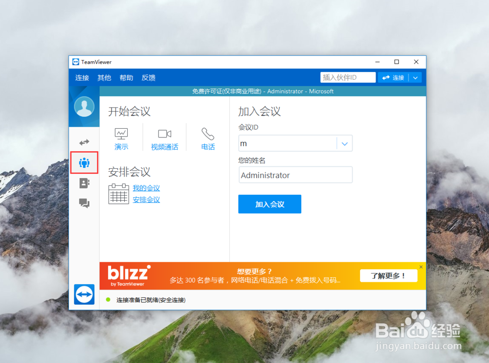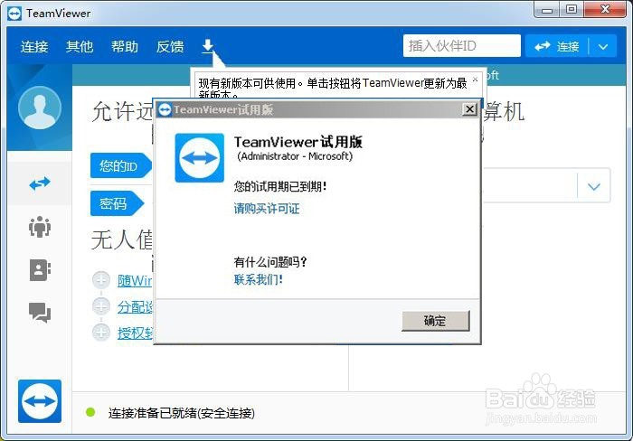 打開teamviewer軟件,目前顯示試用版已到期,無法遠(yuǎn)程控制電腦