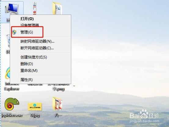 回到桌面,鼠標(biāo)右擊【計(jì)算機(jī)】圖標(biāo),選擇【管理】。