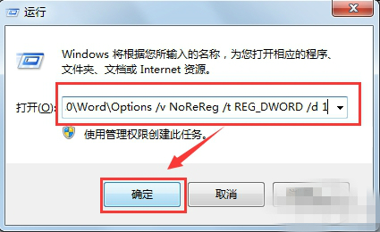 ·復(fù)制代碼:reg add HKCUSoftwareMicrosoftOffice.0WordOptions /v NoReReg /t REG_DWORD /d 1敲擊“回車鍵”,或者點(diǎn)擊“確定”按鈕