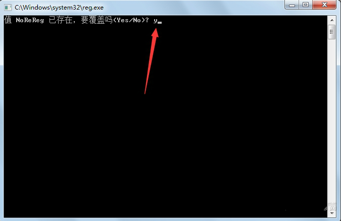 ·若彈出一個(gè)dos窗口,輸入字母"y",敲擊“回車鍵”即可。(注冊(cè)表已在該鍵值,提示是否覆蓋原來的值,輸入y然后回車,表示同意覆蓋原值)