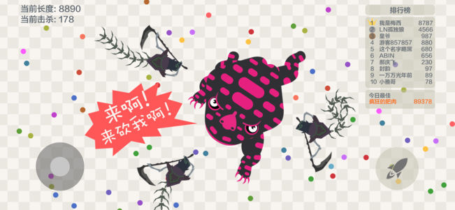 在五毒大作戰(zhàn)游戲的世界中,每個人在初始都化身為一條小蛇,通過不斷努力變得越來越長,最終制霸一方!