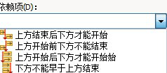 4)點擊任務面板中依賴項后的倒置三角,選擇關系類型;