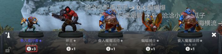 小鹿1、沙王3、海民1、狼人3、斧王1、劍圣2、船長4、大魚2、冰女2