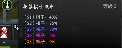 棋子分類:通過購買棋子時的花費,以及招募所需等級分為5類棋子。