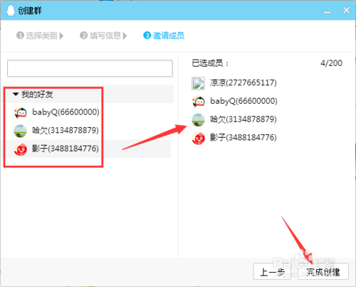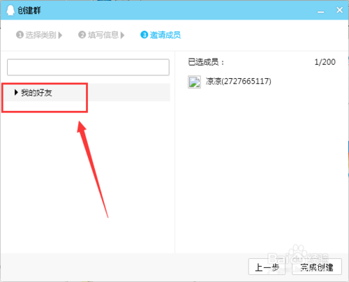 然后添加好友,選擇好友將其拉入群組,最后點(diǎn)擊-完成創(chuàng)建
