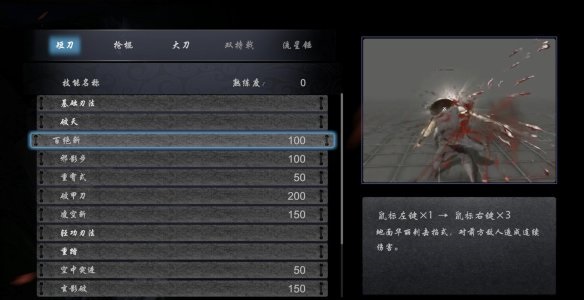 百絕斬:鼠標(biāo)左鍵x1+鼠標(biāo)右鍵x3