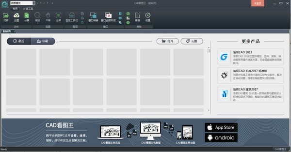 2、這里是cad看圖王的主頁(yè),可以看到功能還是比較多的,你可以在軟件頂部找到看圖的功能