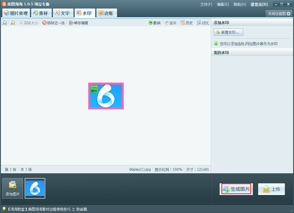 圖片處理完成后需要點(diǎn)擊生成圖片