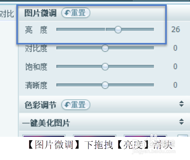 在軟件編輯框中【圖片微調(diào)】下拖拽【亮度】滑塊,調(diào)整圖片的“亮度”操作圖片步驟如下。