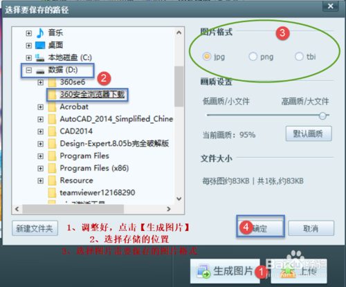 單擊“生成圖片”按鈕,彈出“選擇要保存的路徑”對話框,設(shè)置保存位置后點(diǎn)擊“確定”按鈕。操作圖片步驟如下。