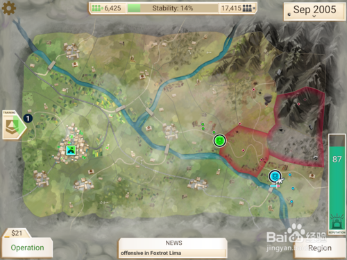 游戲難度越高,越需要考慮地形的影響。選擇高難度的話,叛軍會發(fā)展的很快,這時候別說圍剿,就連防守都會變得很難。這種時候更需要考慮地形。比如地圖上有河,叛軍只能從橋上由一個區(qū)域跑到另一個區(qū)域。