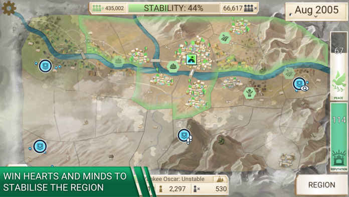 1、屏幕右下角的Reputation相當(dāng)于你的血量,降到0就輸了,叛軍的活動、腐敗太高、事件選項、外國頻繁駐軍等因素都會導(dǎo)致它下降,但增加的方式卻極其有限,目前看來主要就三種方式增加,一是每穩(wěn)定一個地區(qū)會增加幾點,二是一些升級選項能夠讓Reputation立刻增加,比如banker(手機大媽)就有一個升級項能夠立刻增加7點,三是一些事件選項,比如在和叛軍談判過程中采取強硬立場,逮捕貪污犯等能夠增加Reputation,總之提高的方式極為有限,游戲過程中請控制好你的Reputation2、與叛軍和談目前看來是一個很快速的通關(guān)方式,一旦和談成功會換來好幾年的和平期,足夠你去穩(wěn)定所有地區(qū),但要注意的是即便你在和談過程中再怎么采取強硬立場,最終如果你接受和談條件都會大幅降低你的Reputation(可能會高達(dá)20多點),所以請預(yù)留好你的Reputation。