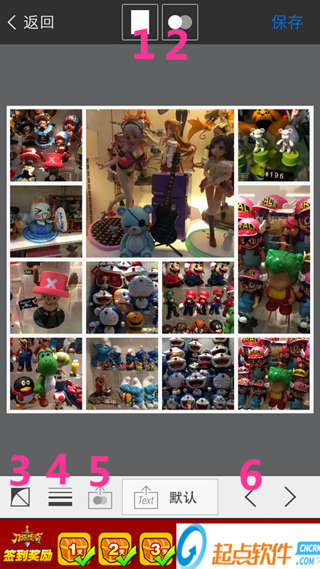 5)每一張都是這么添加圖片的哦,翻到最后一頁的時(shí)候,右上角的下一張按鈕會(huì)變成【保存】,點(diǎn)擊保存后,還可以分享到微信、FaceBook哦。(如下圖)