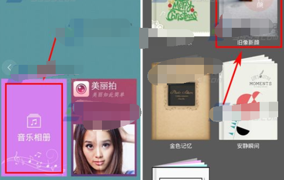 2)點(diǎn)擊進(jìn)入【音樂相冊(cè)】的入口,目前有五種相冊(cè)模板提供給大家選擇哦,選擇一款【模板】點(diǎn)擊進(jìn)去。(如下圖)