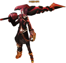 A級使者指定,外觀為紅色頭發(fā)的男性,能操縱火焰,武器為巨大有如鋸子的紅色雙刃劍。喜愛地球的電影,模仿電影狙擊手將手持武器當作長槍發(fā)射。最后死于BRS的加農(nóng)炮下,被卡利吞噬。曾經(jīng)和白巖立下過“如果將特殊的格雷帶回來,就可以支配這個地球”的約定。