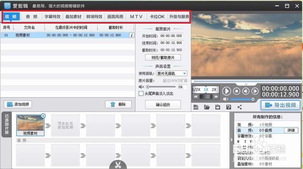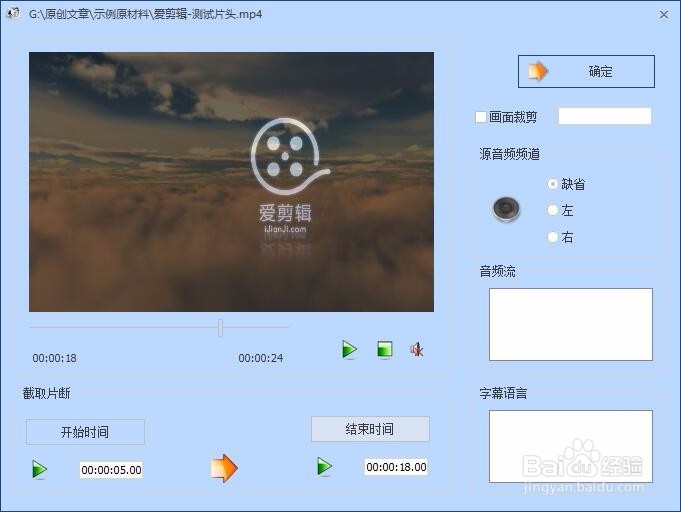 百度經(jīng)驗上傳的視頻大小限制在50MB之內(nèi),如果不喜歡愛剪輯的片頭片尾,可以使用以下工具將其掐頭去尾(減小視頻體積)。