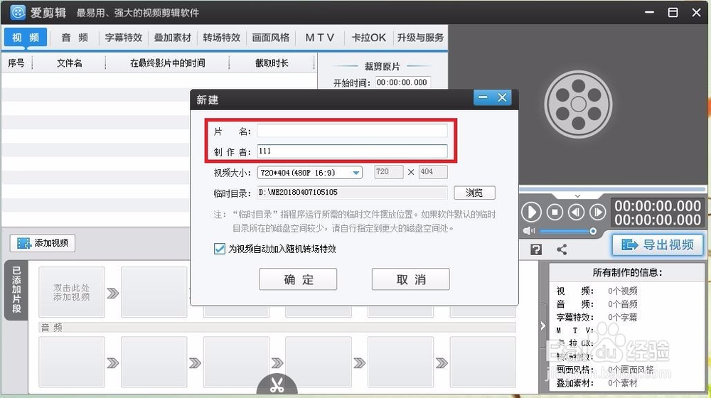 導出視頻的編輯框中也有一些名堂,上面的片名不能大于十個文字。下面的片名長短不受限制。視頻尺寸務必選中大于默認的720左右的檔位,否則會影響視頻分辨率的。