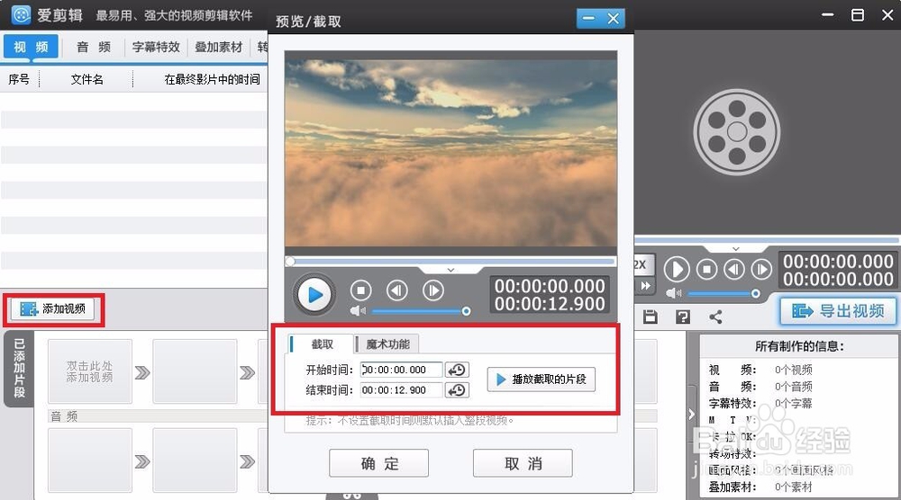 選擇添加視頻,此步驟可對視頻長度進行截取,如圖所示