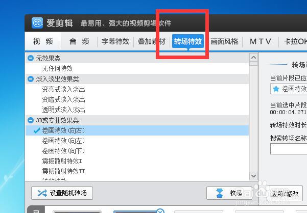 在任務欄中分別有音頻、字幕特效、疊加素材、轉(zhuǎn)場特效、畫面風格、MTV、卡拉OK的功能,下面就跟大家分享一下這些功能的使用方法,如圖所示