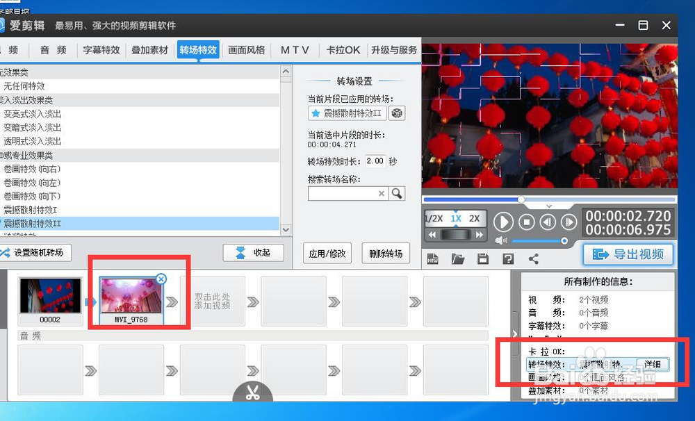 我們點擊第二個視頻,可以在右下角看到我們添加的轉(zhuǎn)場效果。