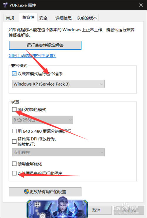 創(chuàng)建一個yuri.exe的快捷方式 右鍵 同樣進行上述兼容性設(shè)置。