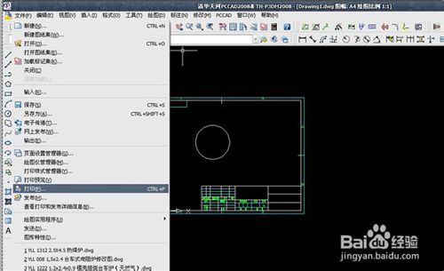 2、打開自己繪制的CAD圖紙,在菜單欄的“文件”中找打“打印”,如圖所示。