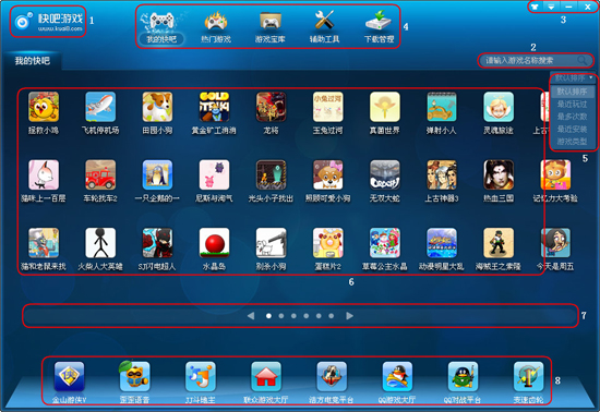 四、快吧導(dǎo)航欄:快吧所有游戲類(lèi)目和下載管理,如圖1區(qū)域4