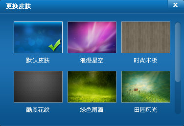 二、換膚面板上可以看到不同款皮膚的縮略圖,快吧游戲準(zhǔn)備了默認(rèn)皮膚、浪漫星空、時(shí)尚木板、綠色雨滴等皮膚,如圖2