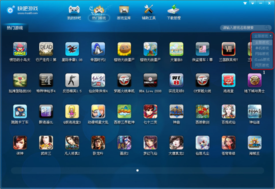快吧游戲是一款簡(jiǎn)單易用的游戲下載管理軟件,提供了數(shù)萬(wàn)款單機(jī)游戲、網(wǎng)絡(luò)游戲、網(wǎng)頁(yè)游戲、小游戲,一鍵下載,自動(dòng)安裝,綠色安全!快吧游戲讓您輕松玩游戲!