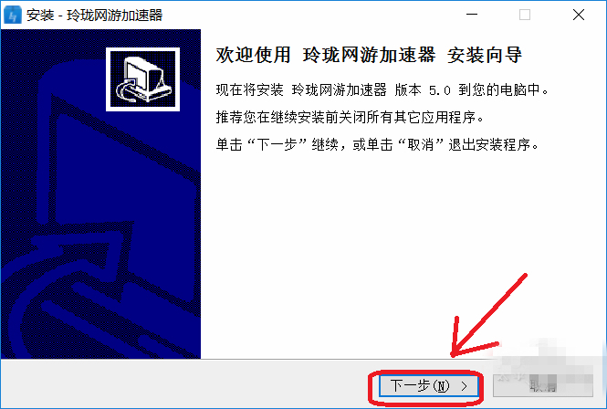 2、打開玲瓏網(wǎng)游加速器安裝包,按步驟安裝