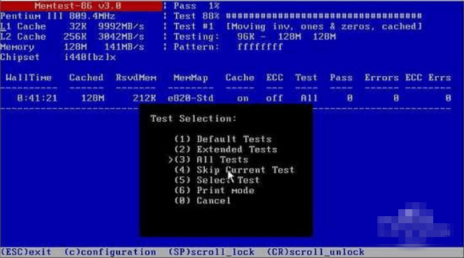 可以輕易的找出BIOS記憶體測(cè)試所找不出的錯(cuò)誤。可以在檢測(cè)畫面上看到目前的進(jìn)度。
