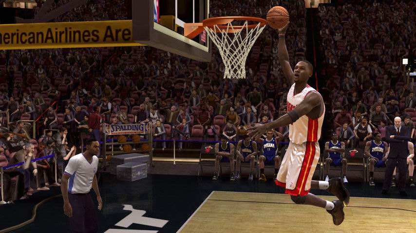 到任何一座NBA球場上好好打場球賽,球場上四周景物的細部圖像都完整呈現(xiàn)在玩家眼前,包括高掛在球場上的冠軍旗幟和退休球衣等。場上的裁判們以及場邊的攝影師也都涵蓋在游戲畫面內(nèi),讓玩家如臨真正球場。