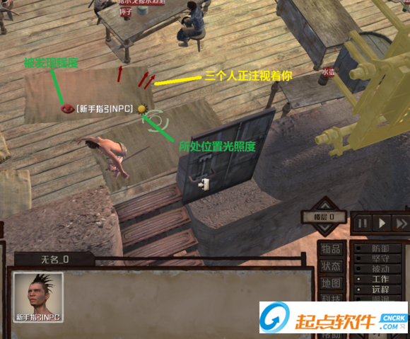NPC又切換到潛行模式,想試試能不能拿點紅色框框的物品,結(jié)果一屋子的人都盯著NPC看,尤其是那個裝備精良的商店保鏢,眼神讓NPC心里直發(fā)毛