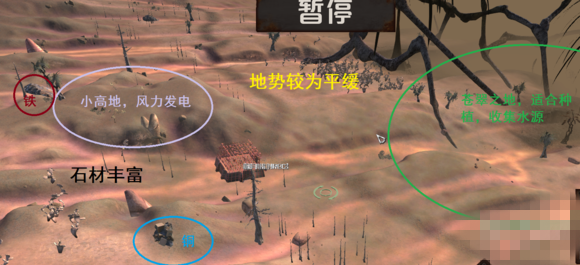 我這里找了一塊戈壁與沼澤交界處,土地肥沃,地勢平緩,偶爾有野生動物,資源齊全且豐富,還有一定風(fēng)力。劣勢是,會遭遇兩塊地形敵人的襲擊。9.5分的地。