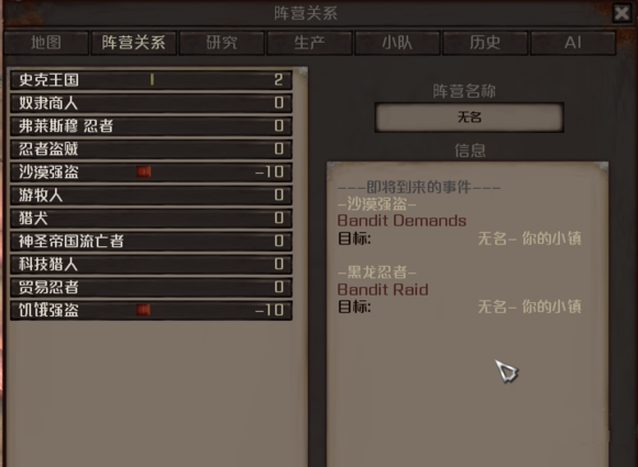 打開陣營關(guān)系,即將到來的事件可看到有誰在向我們靠近,以及倒計時
