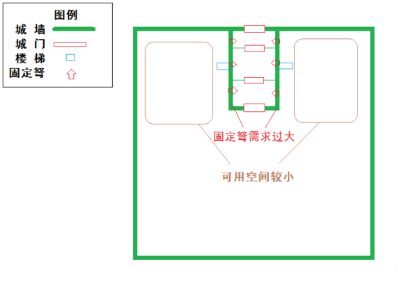 凸城雖然不占用城內(nèi)空間,有向外發(fā)展空間,但是無法發(fā)揮固定弩作用,且外城門難以支援
