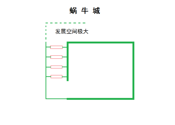 然后就是蝸牛城,注重單側(cè)活力,甕城發(fā)展空間也大
