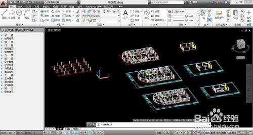 在CAD命令欄中輸入命令”3DORBIT“,然后按回車,就可以自由旋轉(zhuǎn),可以看到我們用天正建筑2014做的圖直接是三維的,如圖:
