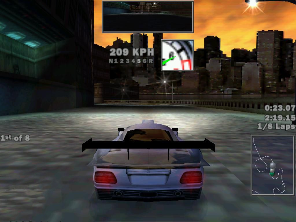 雖然極品飛車3放到現(xiàn)在看起來很簡陋,但基本的效果還是會(huì)有的。車身摩擦產(chǎn)生火花效果,以及雨天中的雨點(diǎn)效果,甚至雨點(diǎn)效果中還可以見到打雷,然后就是隆隆的雷聲…………不過最出色的還是煙霧效果。在煙霧效果中煙霧很贊,煙霧還可以在車的行駛速度的抵消下迅速向后。煙霧也會(huì)慢慢消散。車子在不同環(huán)境下煙霧效果也不同。比如起步時(shí)的煙霧是黑灰色。而在泥路上行駛時(shí)煙霧是啞黃色。在沙漠上行駛時(shí)煙霧是黃色。如果踩上落葉,落葉還會(huì)被激起在路上飛散。如果在行駛時(shí)暫停游戲,地圖上所有東西就會(huì)暫停定住,玩家就可以360度旋轉(zhuǎn)觀察車子。游戲可以自定義HUD的布局,讓你的NFS3更加個(gè)性化。不過只有進(jìn)入比賽后才能設(shè)定。進(jìn)入比賽后,按ESC鍵暫停,選擇“Head.Up.Display”,再選擇“Position...”,就可以進(jìn)入自定義HUD面板了。HUD設(shè)定分為正常和警察,這兩個(gè)設(shè)定是分開的,如果你想編輯熱力追蹤模式下的HUD,只能選定警車并加入熱力追蹤模式游戲。